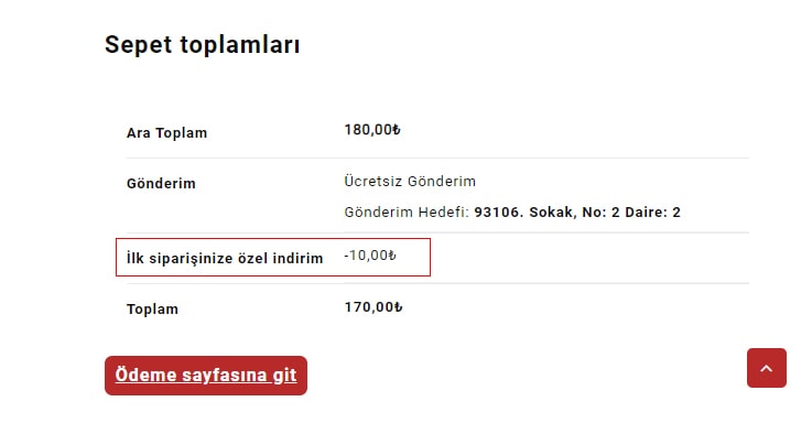 Özel not: Sepet toplamında Ücretsiz Kargo baremini tüm indirimler uygulandıktan sonra kalan tutara göre hesaplaması gerekiyor.